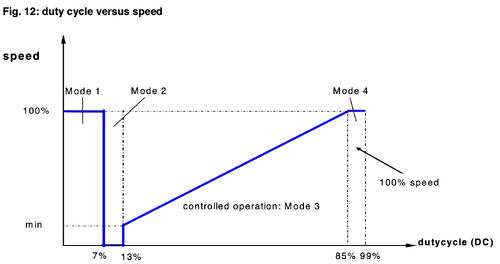 The ratio between duty cycle and speed is shown in the following diagram. Fig 12.