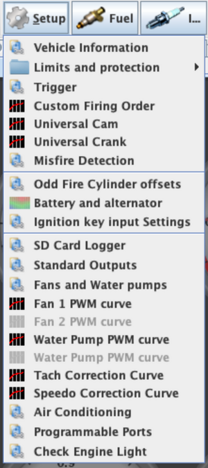 This is the first setup menu in TunerStudio.